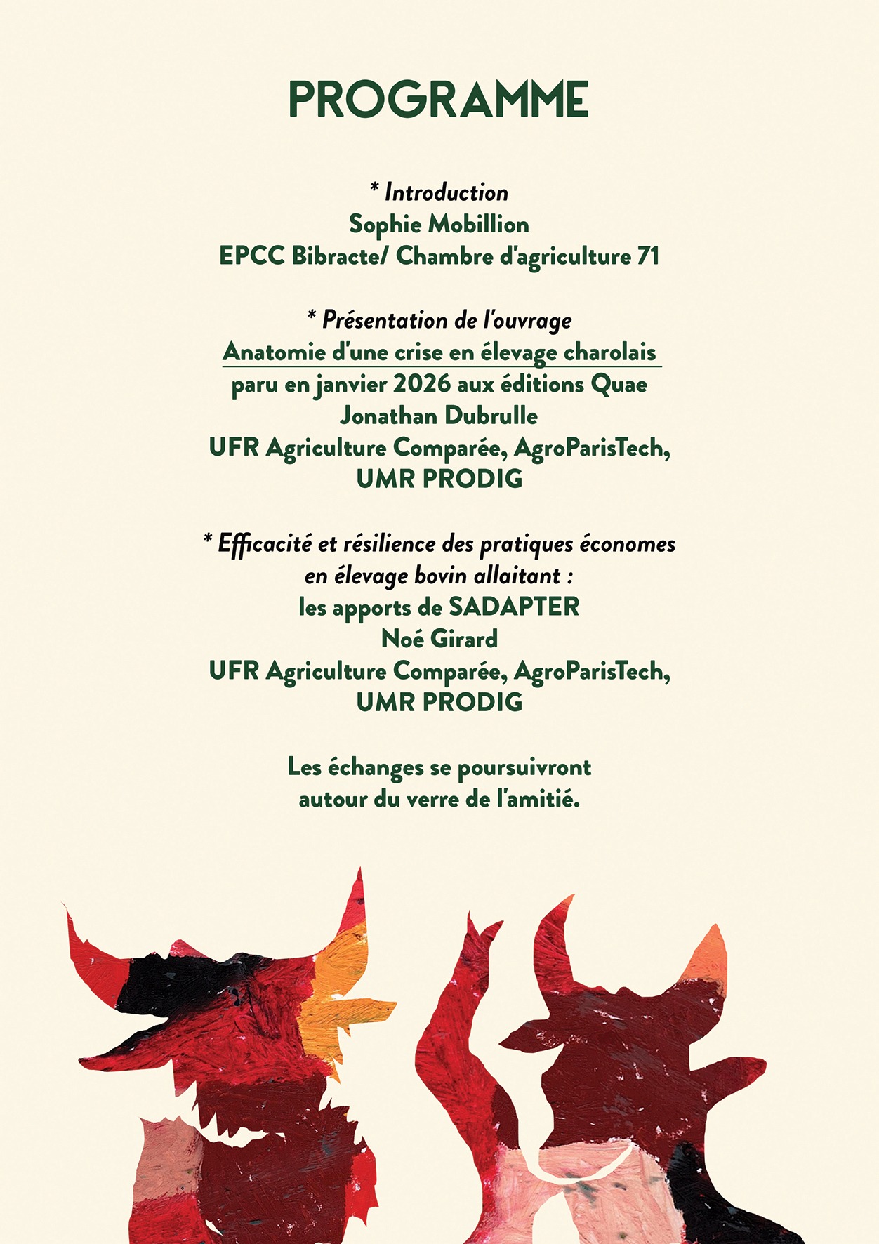 🟢 Jonathan Dubrulle, agro-économiste et docteur en Agriculture comparée présentera le fruit de sa recherche doctorale synthétisée dans le livre Anatomie d'une crise en élevage charolais publié en janvier 2026 aux éditions Quae : https://www.quae.com/produit/1984/9782759241415/anatomie-d-une-crise-en-elevage-charolais
